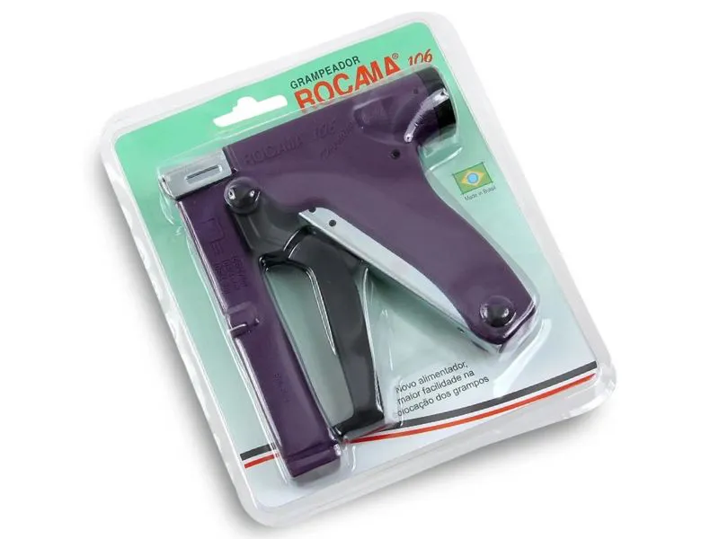 Grampeador Rocama Tipo pistola 106 Premium possui maior facilidade na colocação dos grampos.
