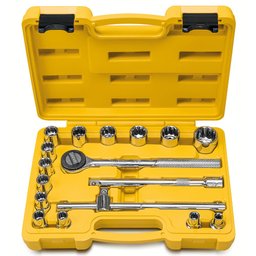 Jogo de Soquetes Estriados Encaixe 1/2 Pol em Aço Cromo Vanádio com Acabamento Cromado e Maleta 17 Peças TRAMONTINA-43600017