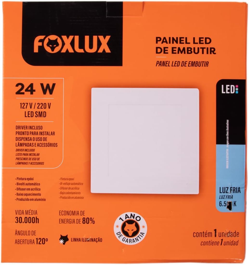 O Painel de LED da Foxlux está disponível nos modelos de embutir e de sobrepor. Possui drive incluso e é feito de alumínio, o que ajuda em manter a temperatura baixa para não atrair insetos. É ideal para ambientes internos que exigem iluminação dirigida por longo período de uso.